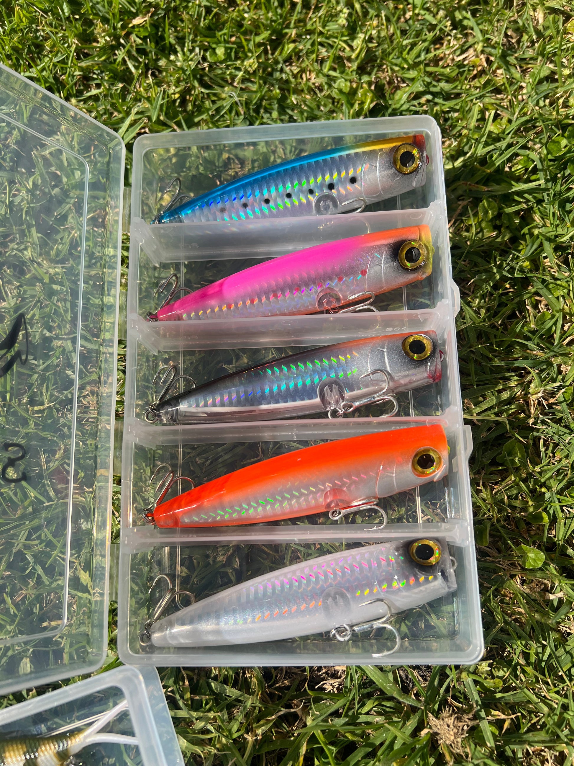· Poppers – 23g / 11cm poppers. Perfect for chasing Tailor, Salmon and Bonito off the rocks or boat